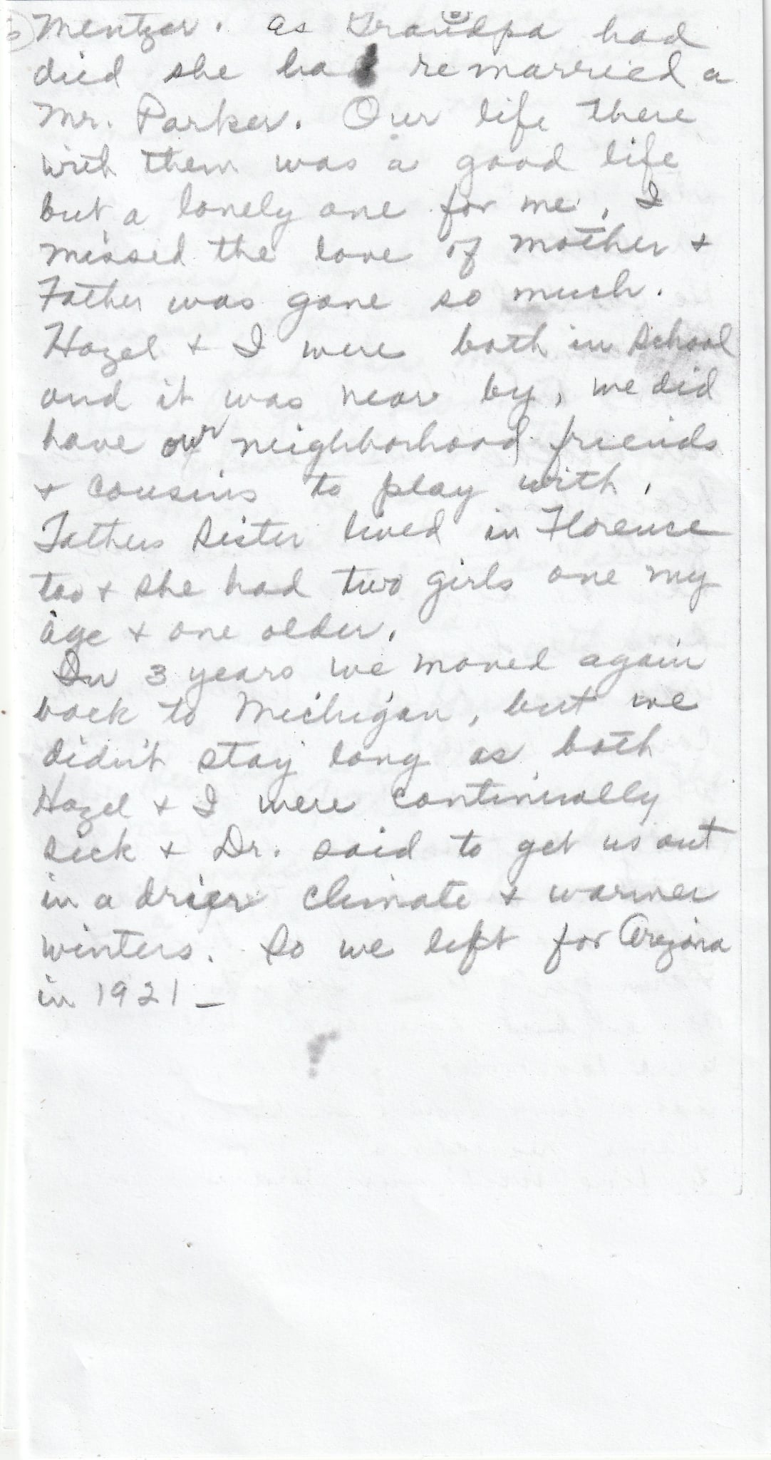 family. She also lived her later years in Marion Iowa where the Mentzer's first moved to from Ohio